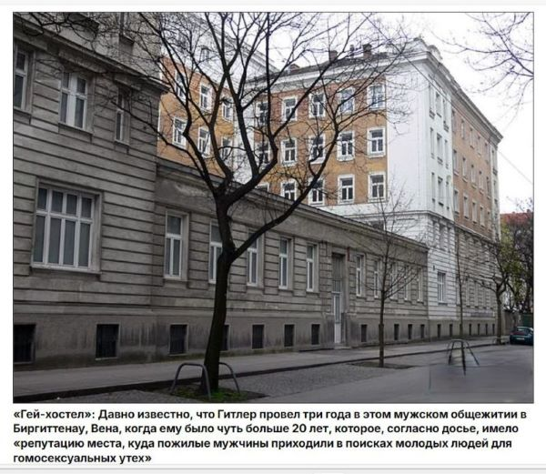 Бечки период будућег Фиреровог живота, који је почео 1909. године, заслужује посебну пажњу. У то време Хитлер је био у тешкој животној ситуацији, уопште није имао новца. Због тога је од 1910. до 1913. био приморан да се бави хомосексуалном проституцијом, живећи у хостелу у Мелдеманштрасе 27, у Биргитенауу, 20. округу Беча.