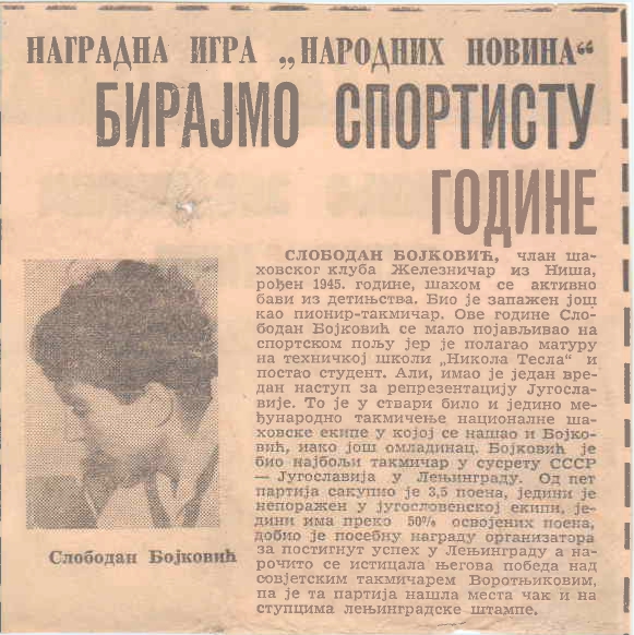 Захваљујући успеху у Лењинграду, по други пут (први пут 1962. године) ушао сам у избор за десет најбољих спортиста године у Нишу, и заузео треће место.