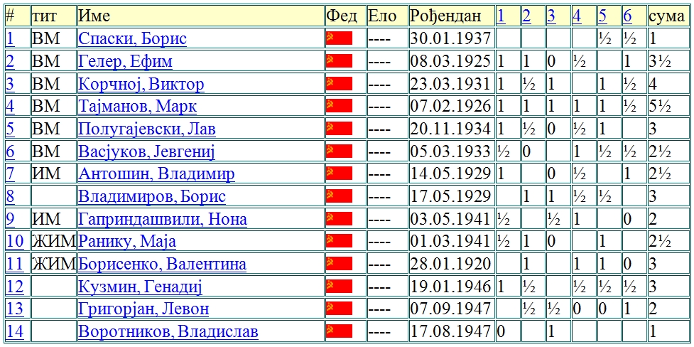 | 11.07.1964 | Кузмин, Генадиј | ½:½ | Бојковић, Слободан | D50 |